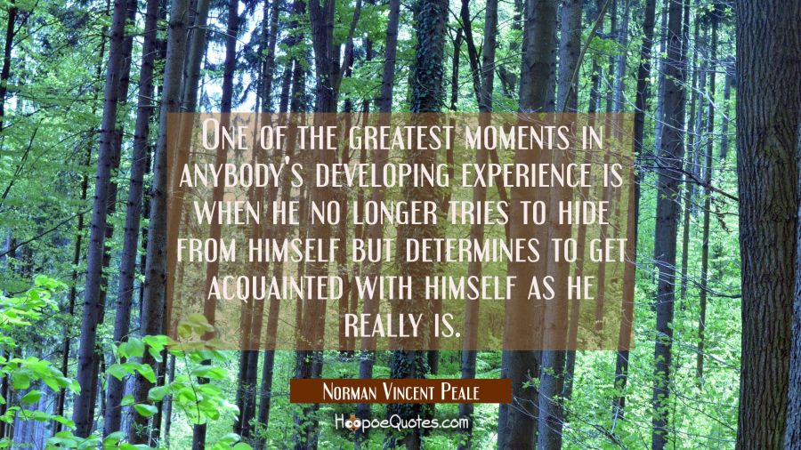 One of the greatest moments in anybody's developing experience is when he no longer tries to hide from himself but determines to get acquainted with himself as he really is.