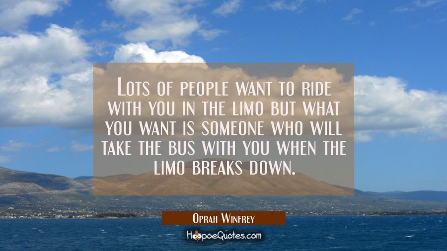 Lots of people want to ride with you in the limo but what you want is someone who will take the bus with you when the limo breaks down.