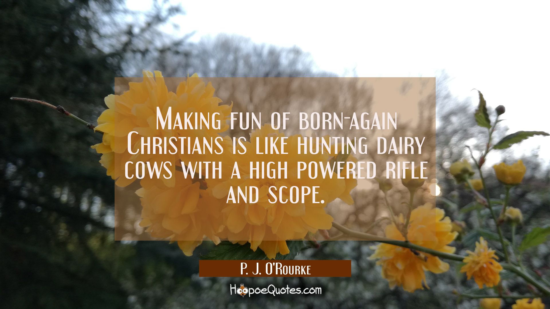 Making fun of born-again Christians is like hunting dairy cows with a high powered rifle and scope.