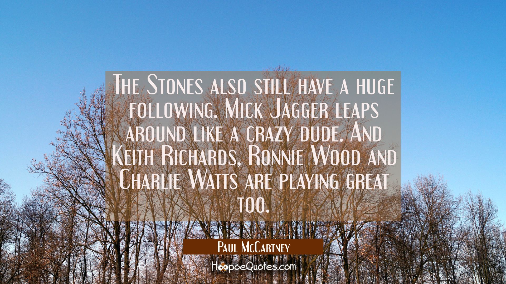 The Stones also still have a huge following. Mick Jagger leaps around like a crazy dude. And Keith Richards, Ronnie Wood and Charlie Watts are playing great too.