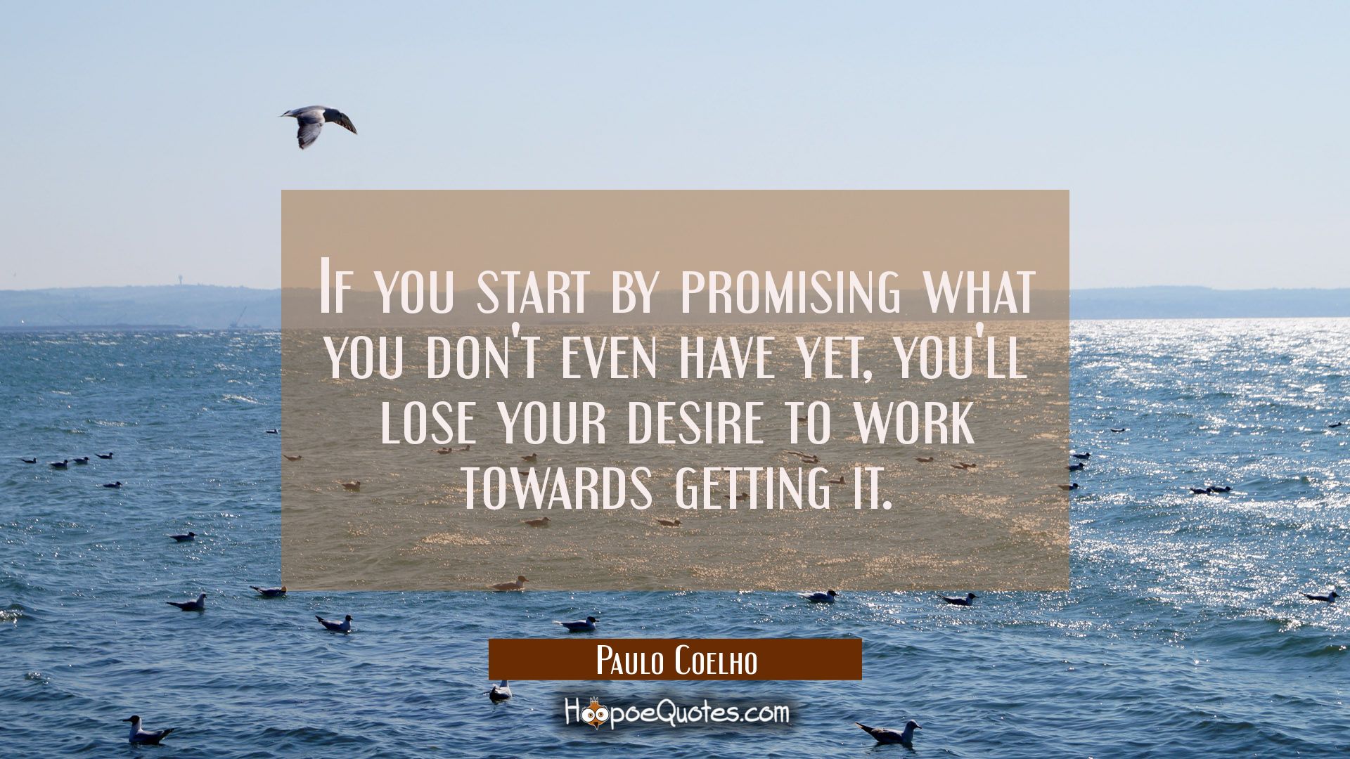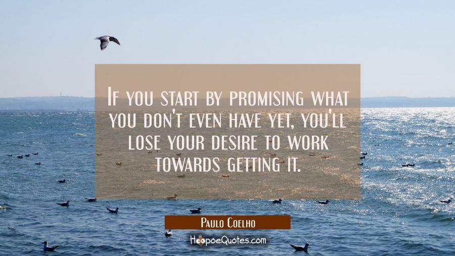 If you start by promising what you don't even have yet, you'll lose your desire to work towards getting it.