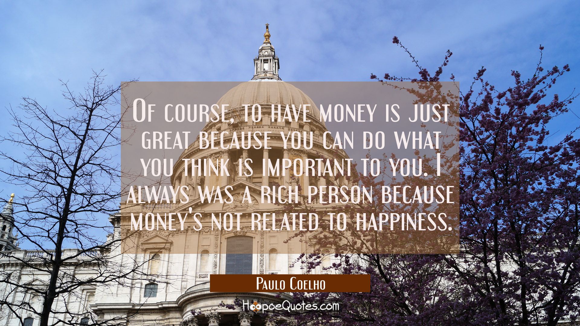 Of course, to have money is just great because you can do what you think is important to you. I always was a rich person because money's not related to happiness.