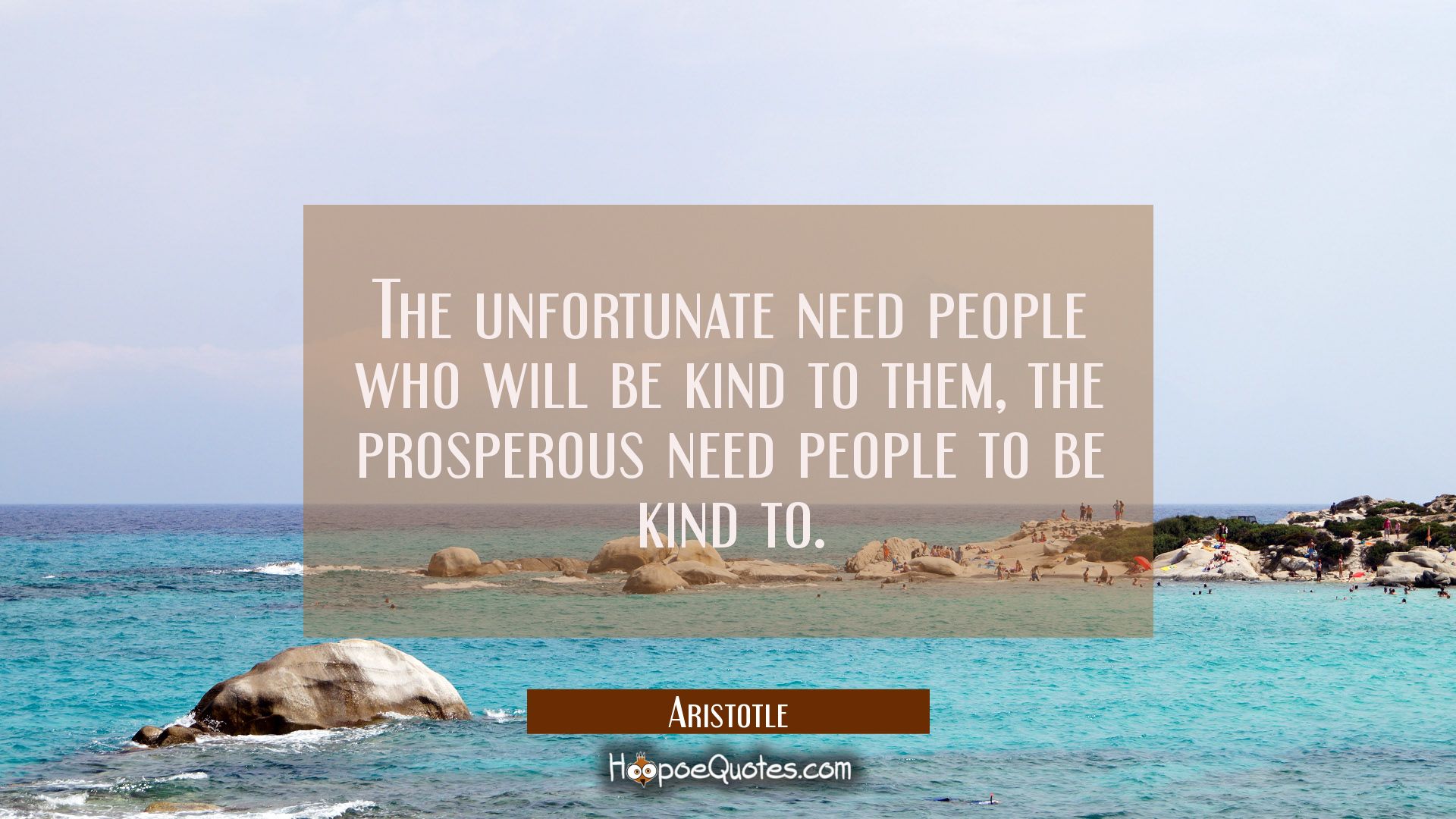 The unfortunate need people who will be kind to them, the prosperous need people to be kind to.