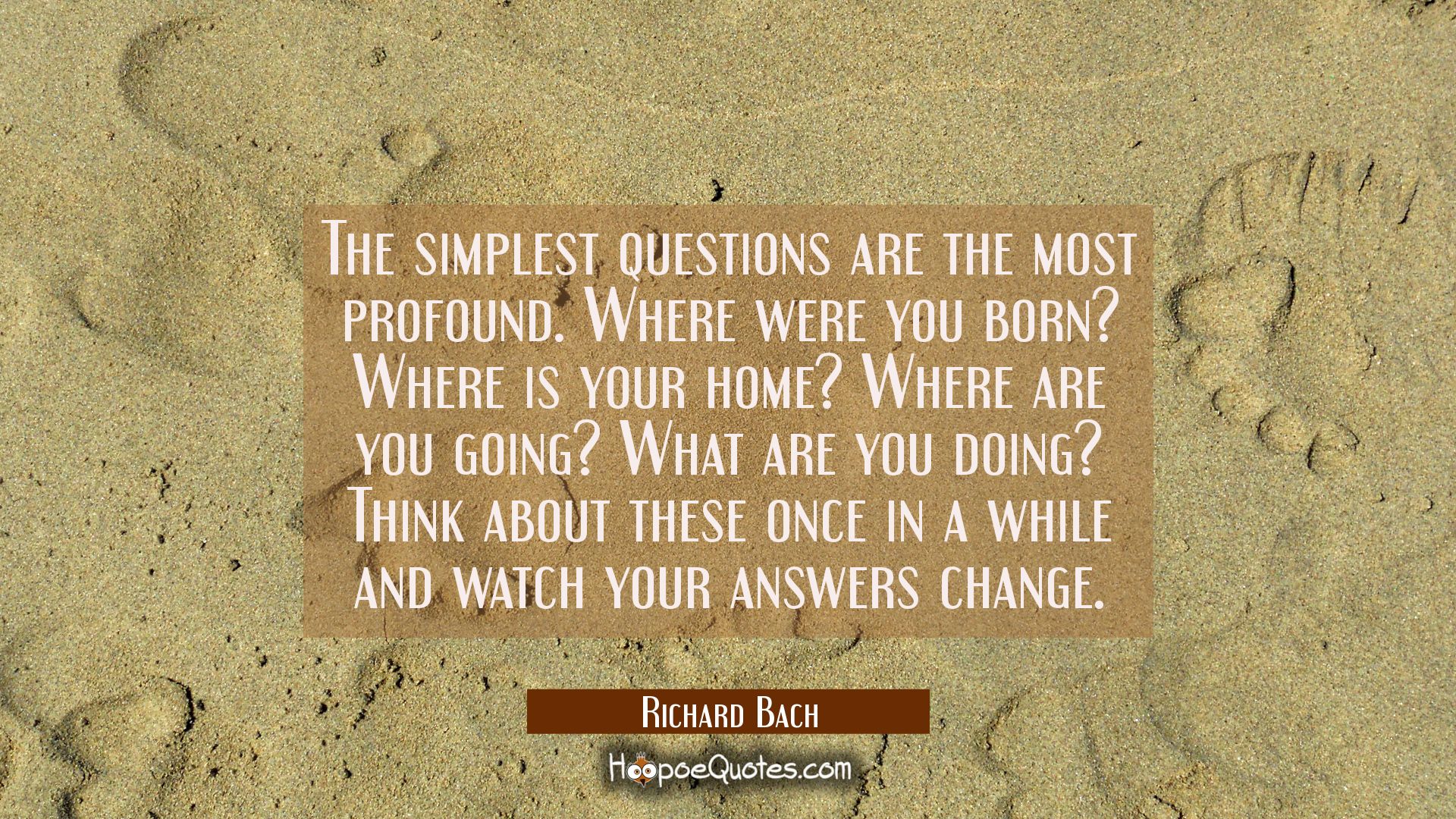 The simplest questions are the most profound. Where were you born? Where is your home? Where are you going? What are you doing? Think about these once in a while and watch your answers change.