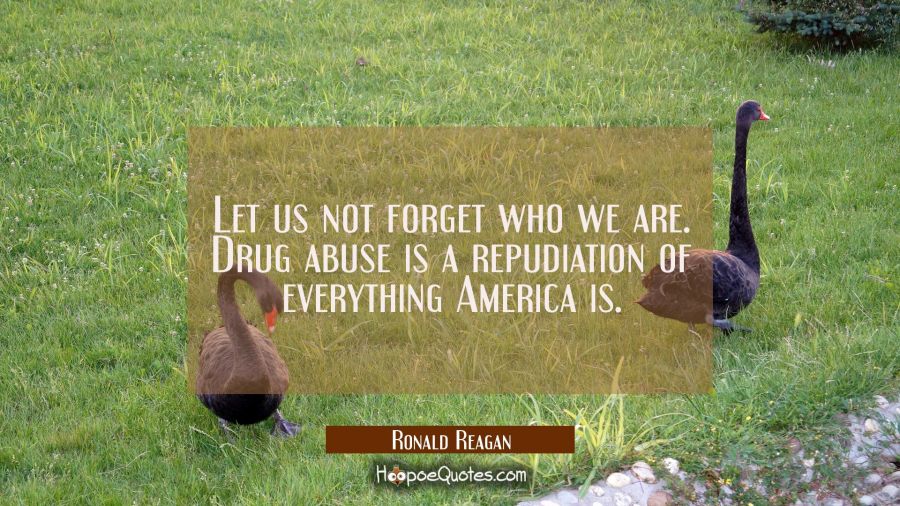 Let us not forget who we are. Drug abuse is a repudiation of everything America is.