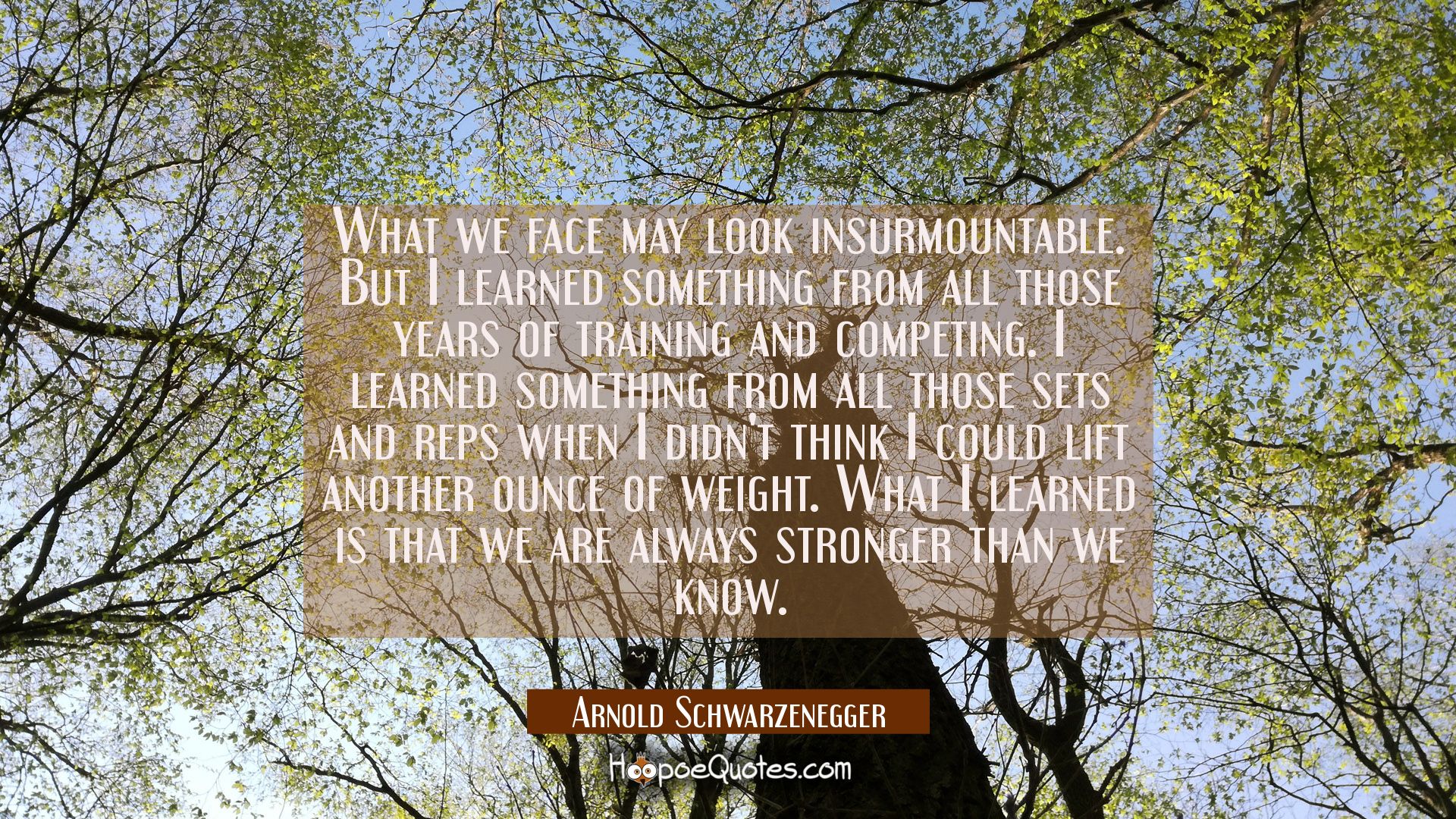 What we face may look insurmountable. But I learned something from all those years of training and competing. I learned something from all those sets and reps when I didn't think I could lift another ounce of weight. What I learned is that we are always stronger than we know.