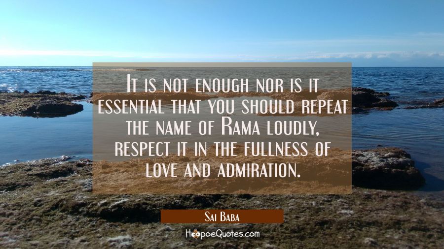 It is not enough nor is it essential that you should repeat the name of Rama loudly, respect it in the fullness of love and admiration.
