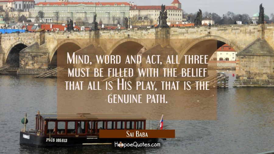 Mind, word and act, all three must be filled with the belief that all is His play, that is the genuine path.