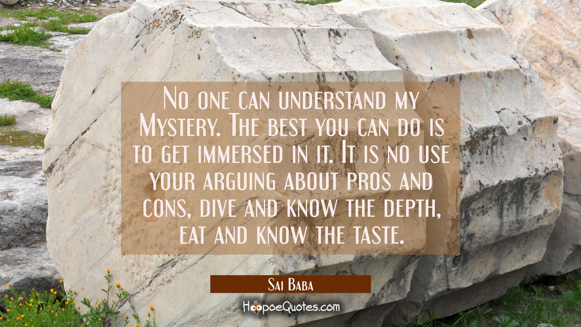 No one can understand my Mystery. The best you can do is to get immersed in it. It is no use your arguing about pros and cons, dive and know the depth, eat and know the taste.