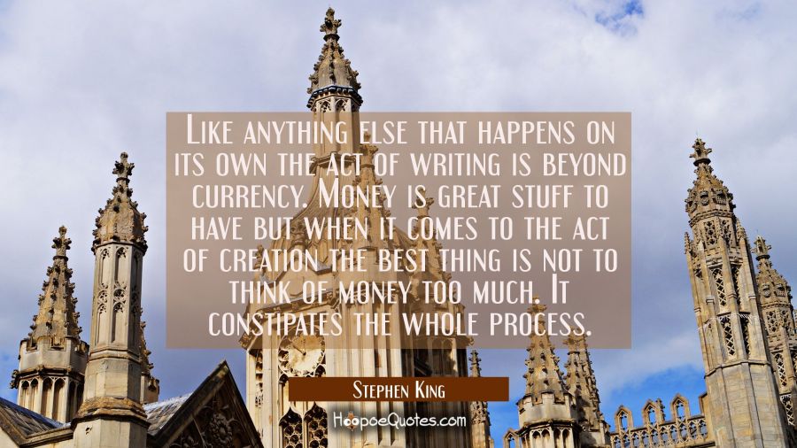 Like anything else that happens on its own the act of writing is beyond currency. Money is great stuff to have but when it comes to the act of creation the best thing is not to think of money too much. It constipates the whole process.
