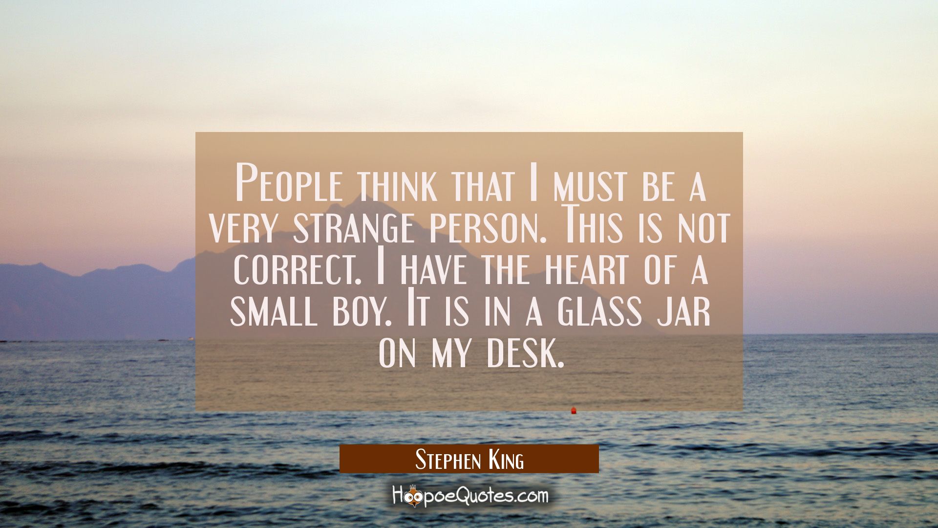 People think that I must be a very strange person. This is not correct. I have the heart of a small boy. It is in a glass jar on my desk.