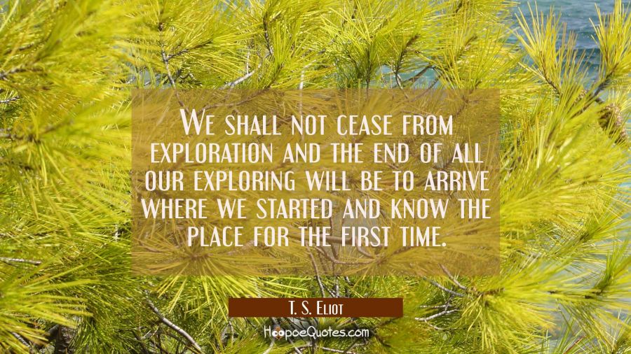 We shall not cease from exploration and the end of all our exploring will be to arrive where we started and know the place for the first time.