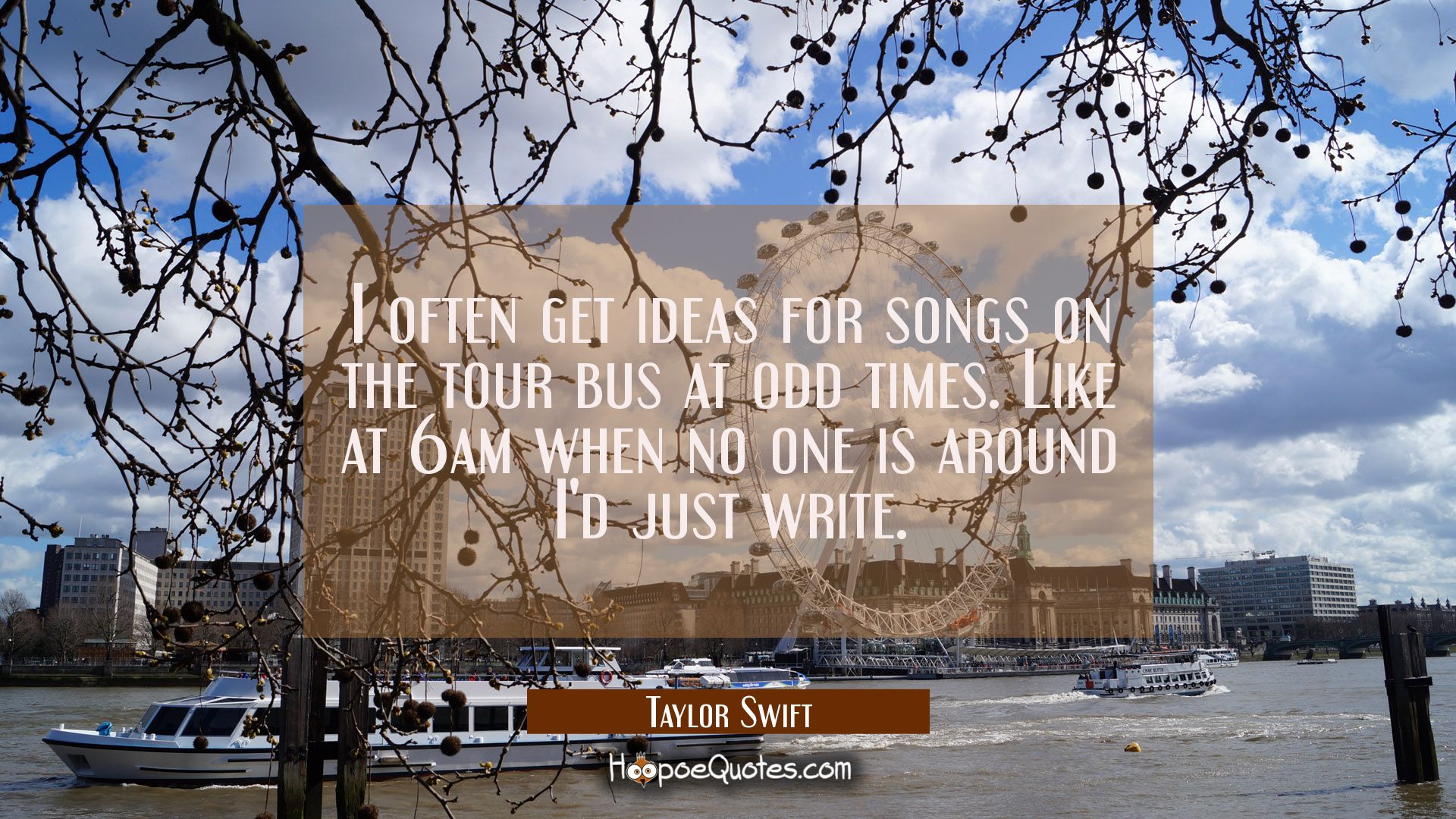 I often get ideas for songs on the tour bus at odd times. Like at 6am when no one is around I'd just write.