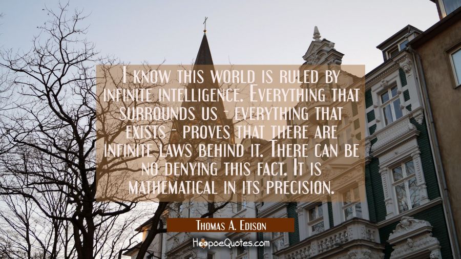 I know this world is ruled by infinite intelligence. Everything that surrounds us - everything that exists - proves that there are infinite laws behind it. There can be no denying this fact. It is mathematical in its precision.