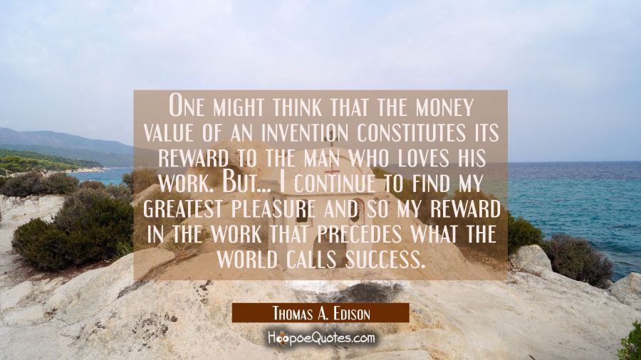 One might think that the money value of an invention constitutes its reward to the man who loves his work. But... I continue to find my greatest pleasure and so my reward in the work that precedes what the world calls success.