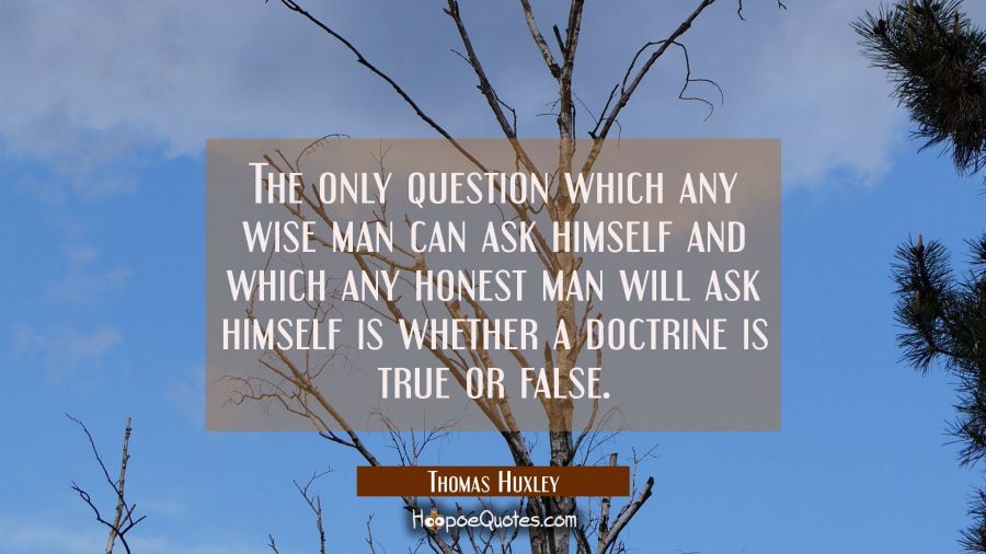 The only question which any wise man can ask himself and which any honest man will ask himself is whether a doctrine is true or false.