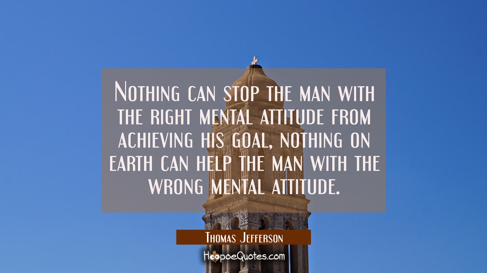 Nothing can stop the man with the right mental attitude from achieving his goal, nothing on earth can help the man with the wrong mental attitude.