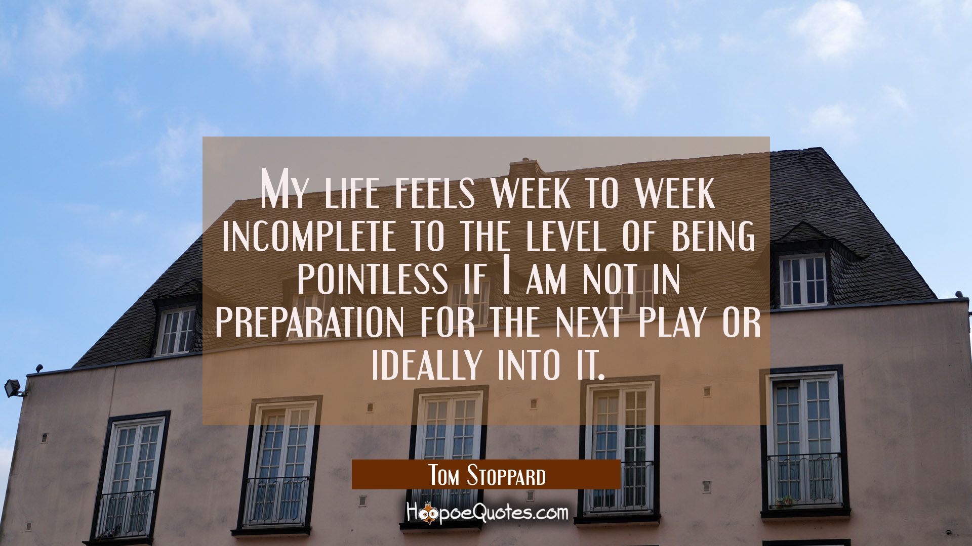 My life feels week to week incomplete to the level of being pointless if I am not in preparation for the next play or ideally into it.