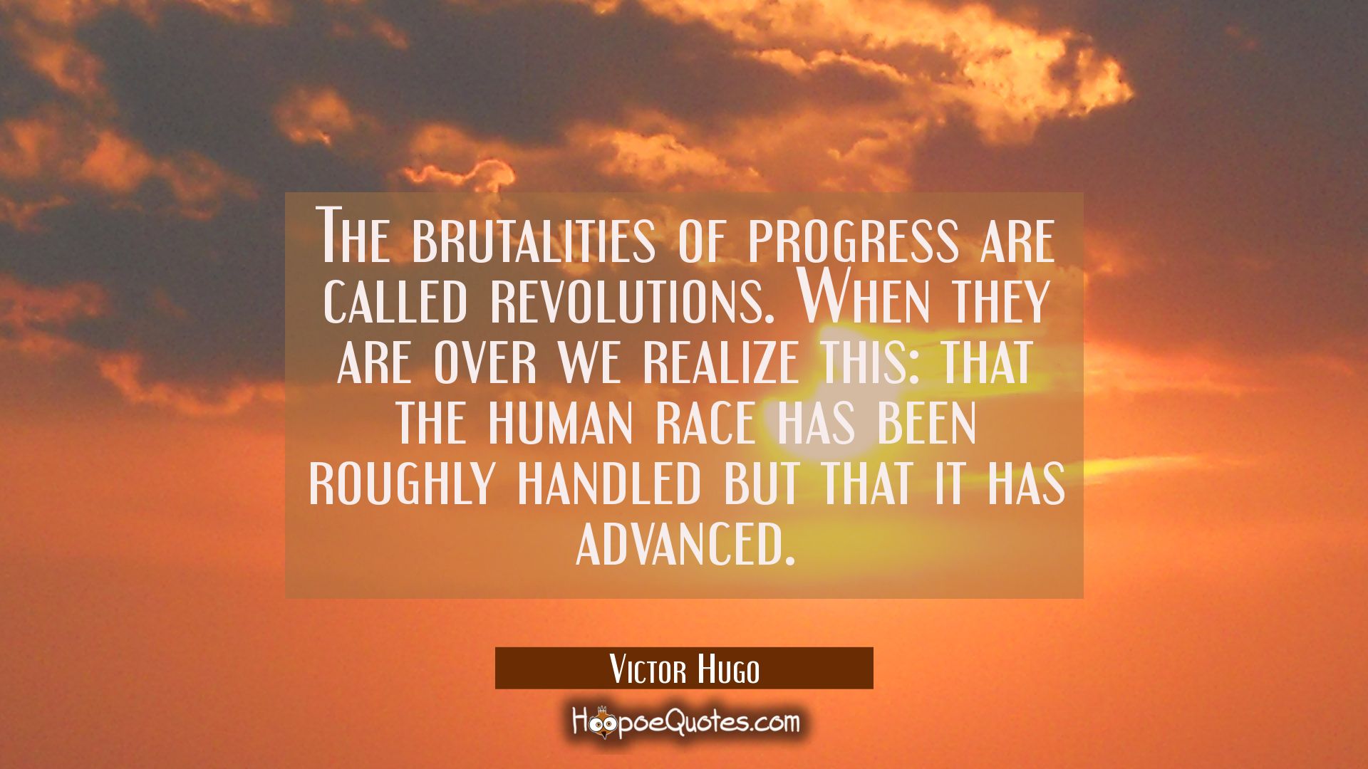 The brutalities of progress are called revolutions. When they are over we realize this: that the human race has been roughly handled but that it has advanced.