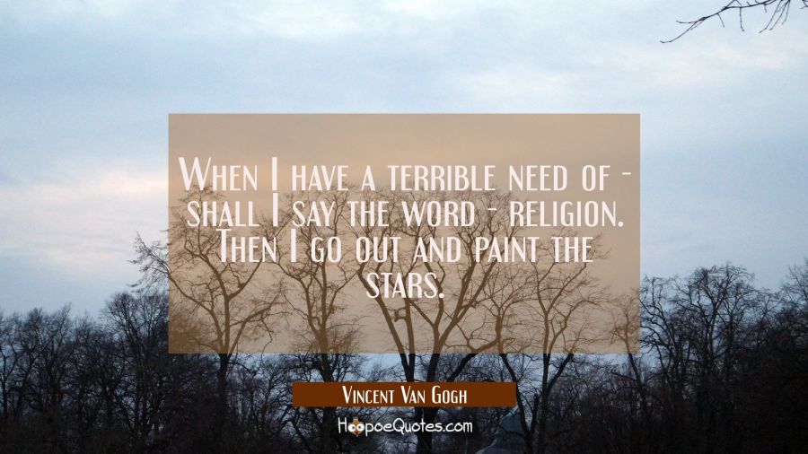 When I have a terrible need of - shall I say the word - religion. Then I go out and paint the stars.