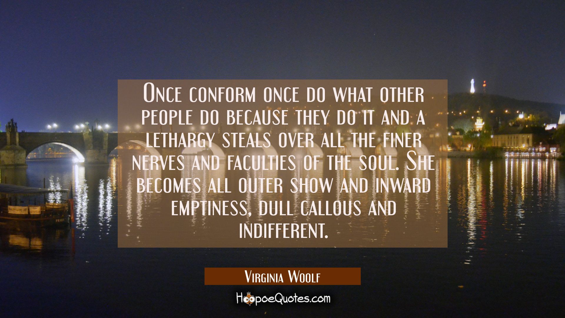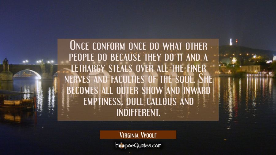 Once conform once do what other people do because they do it and a lethargy steals over all the finer nerves and faculties of the soul. She becomes all outer show and inward emptiness, dull callous and indifferent.