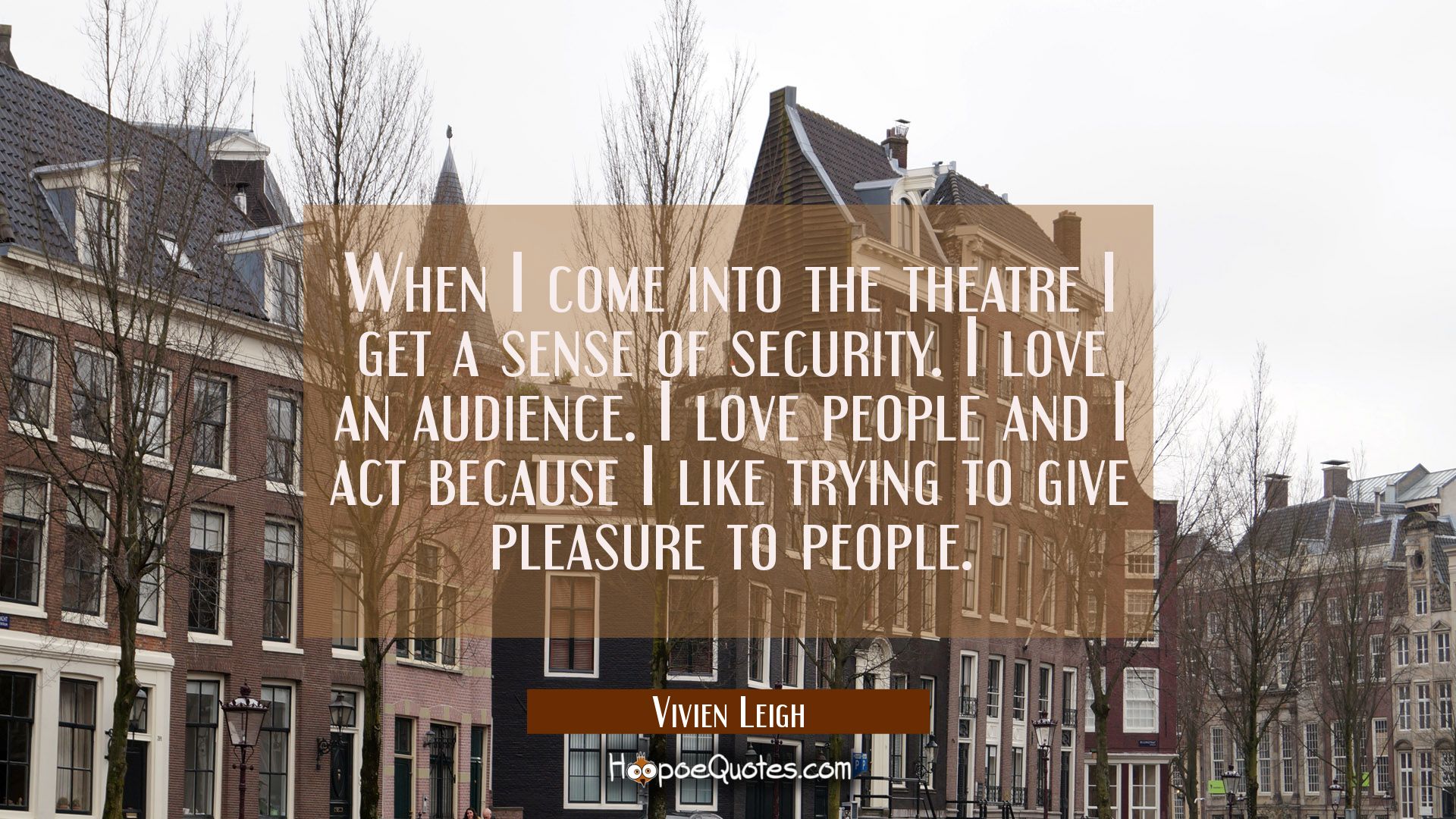 When I come into the theatre I get a sense of security. I love an audience. I love people and I act because I like trying to give pleasure to people.