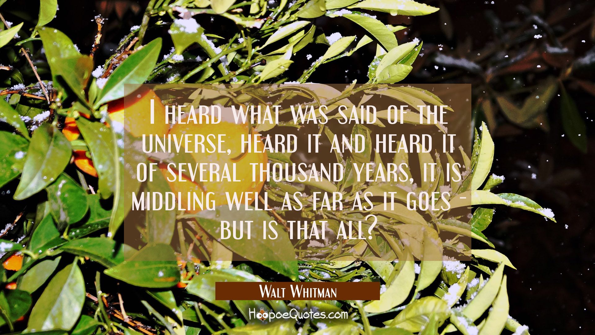 I heard what was said of the universe, heard it and heard it of several thousand years, it is middling well as far as it goes - but is that all?