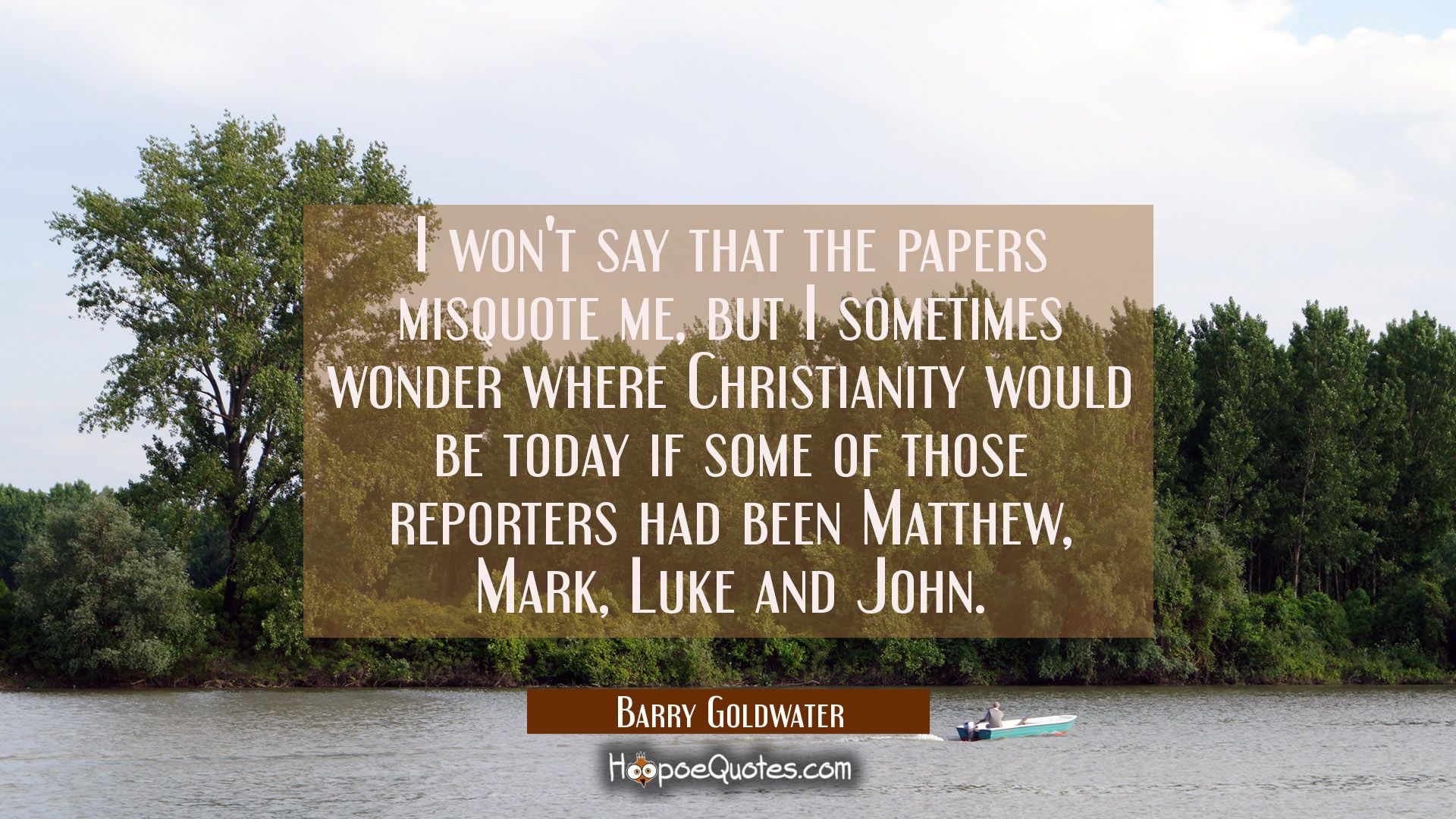 I won't say that the papers misquote me, but I sometimes wonder where Christianity would be today if some of those reporters had been Matthew, Mark, Luke and John.