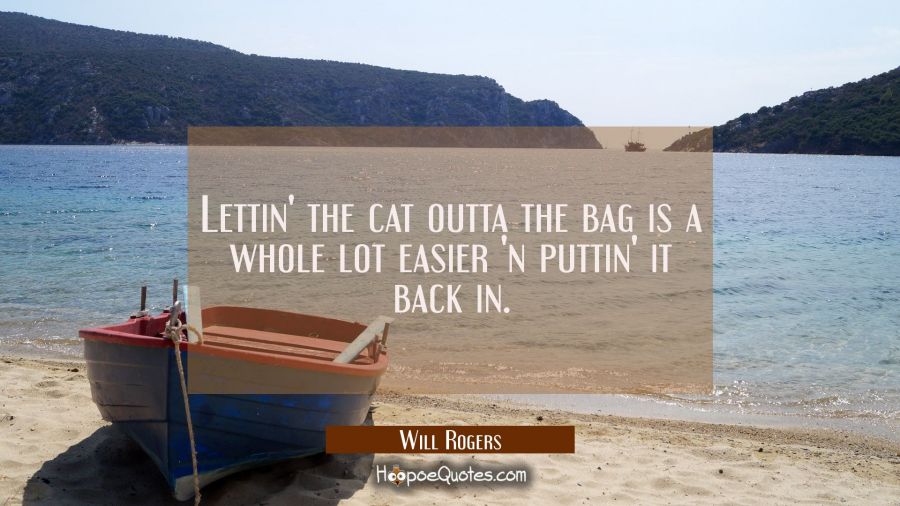 Lettin' the cat outta the bag is a whole lot easier 'n puttin' it back in.