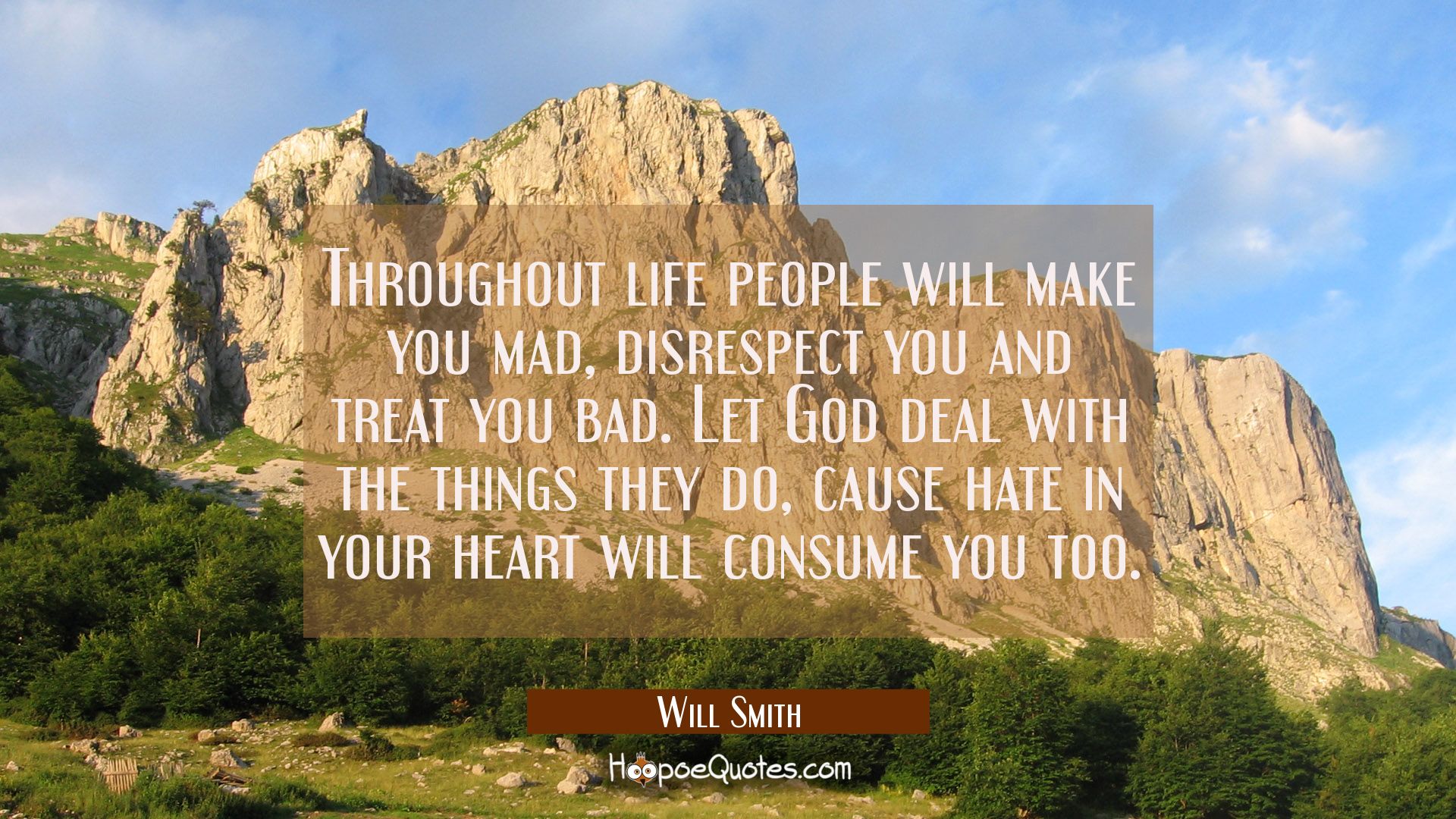 Throughout life people will make you mad, disrespect you and treat you bad. Let God deal with the things they do, cause hate in your heart will consume you too.