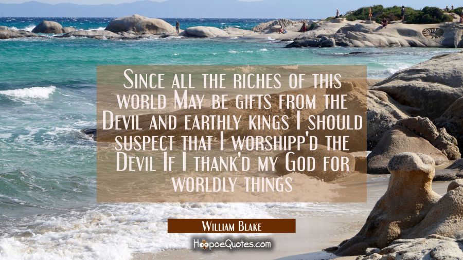Since all the riches of this world May be gifts from the Devil and earthly kings I should suspect that I worshipp'd the Devil If I thank'd my God for worldly things