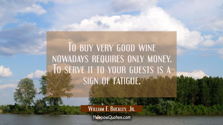 To buy very good wine nowadays requires only money. To serve it to your guests is a sign of fatigue.
