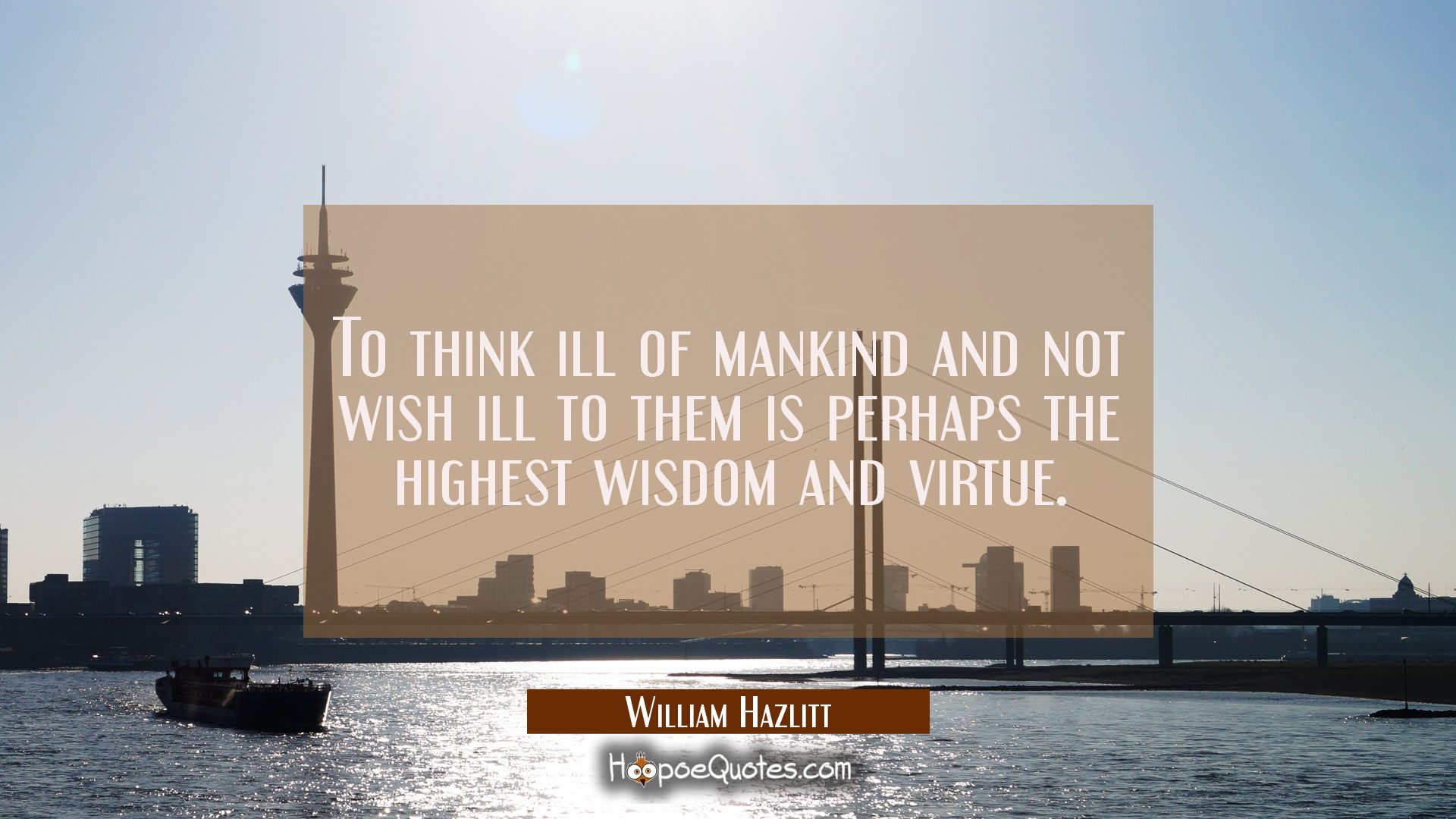 To think ill of mankind and not wish ill to them is perhaps the highest wisdom and virtue.