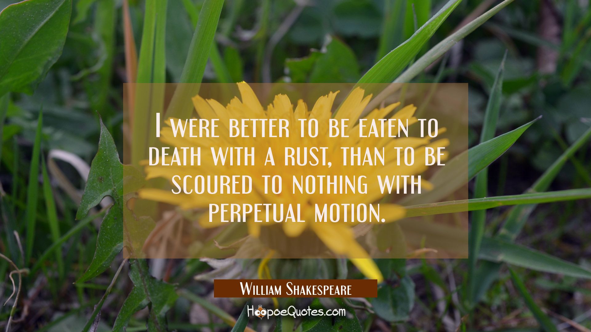 I were better to be eaten to death with a rust, than to be scoured to nothing with perpetual motion.