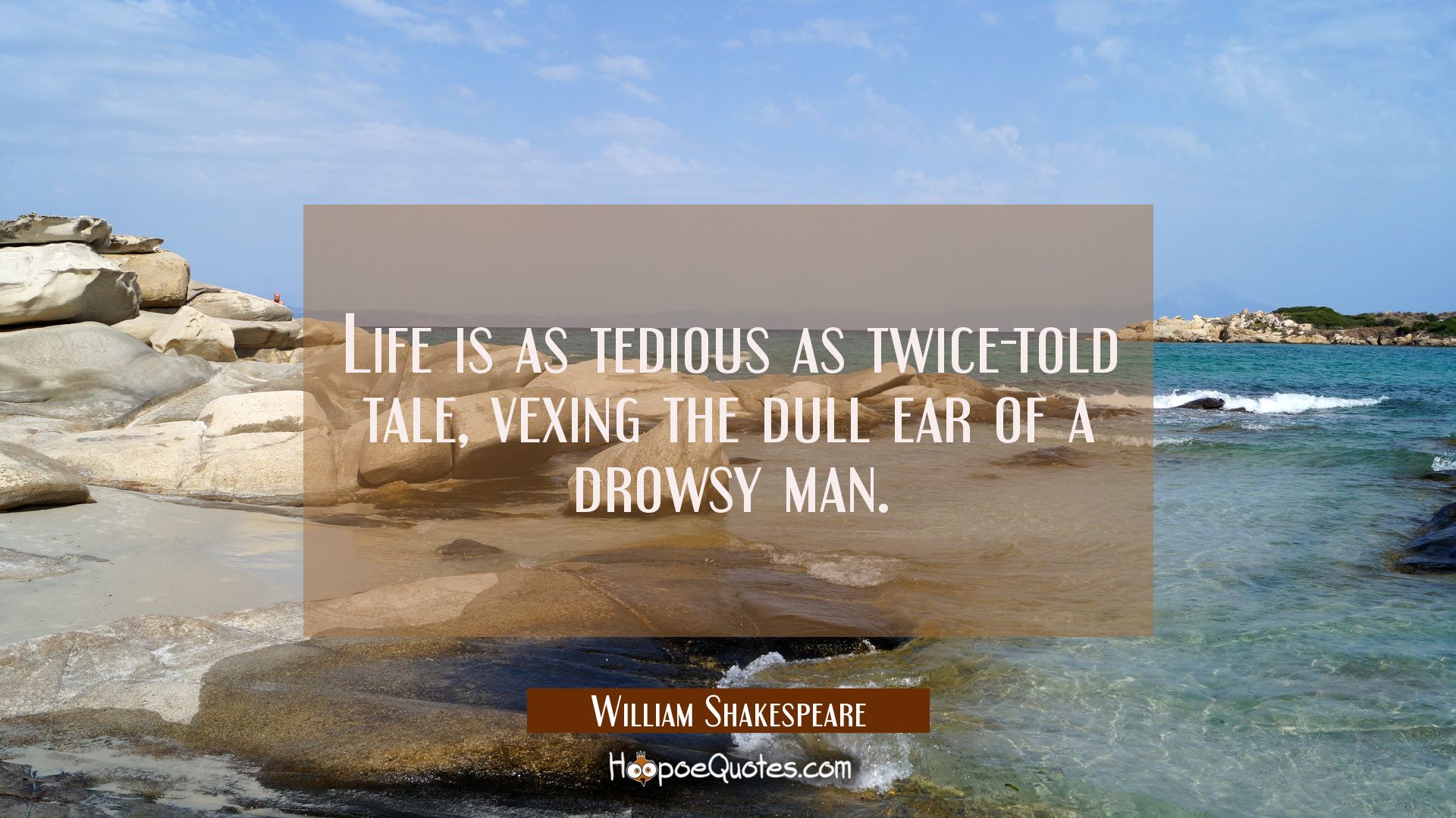 Life is as tedious as twice-told tale, vexing the dull ear of a drowsy man.