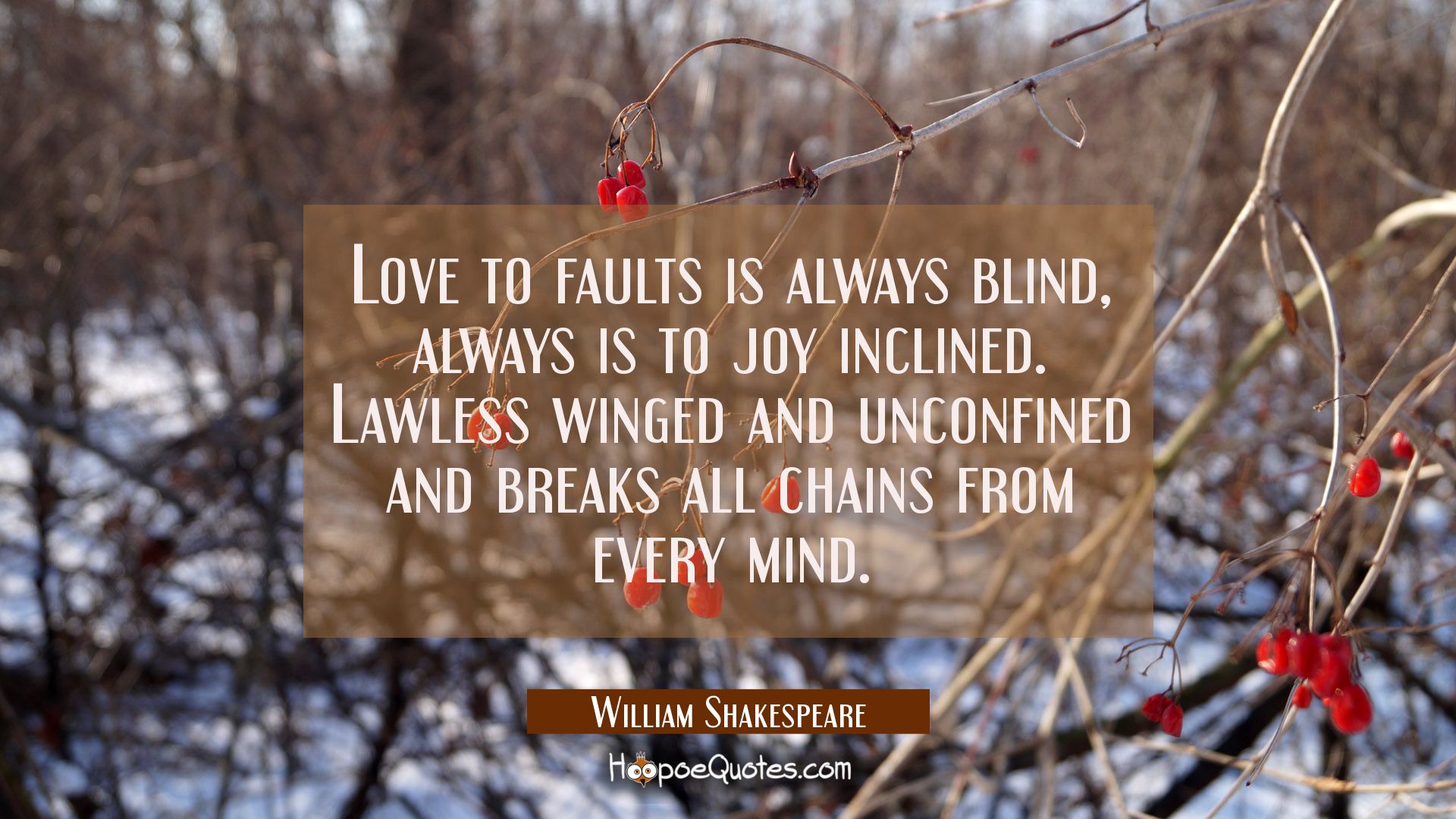 Love to faults is always blind, always is to joy inclined. Lawless winged and unconfined and breaks all chains from every mind.