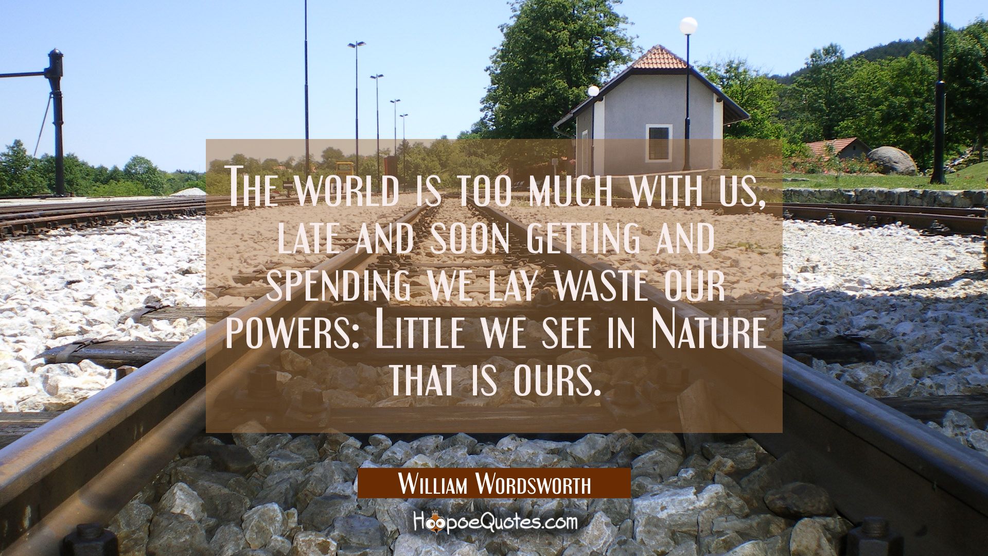 The world is too much with us, late and soon getting and spending we lay waste our powers: Little we see in Nature that is ours.