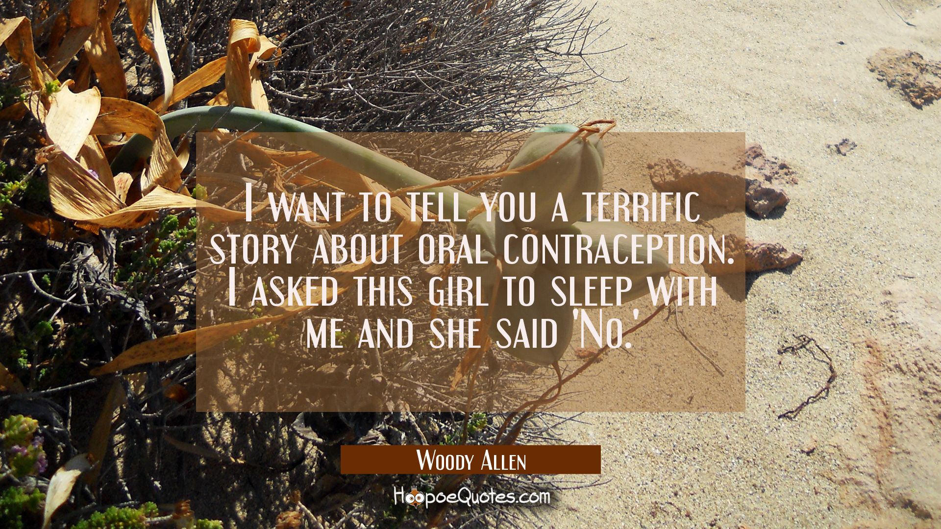 I want to tell you a terrific story about oral contraception. I asked this girl to sleep with me and she said 'No.'