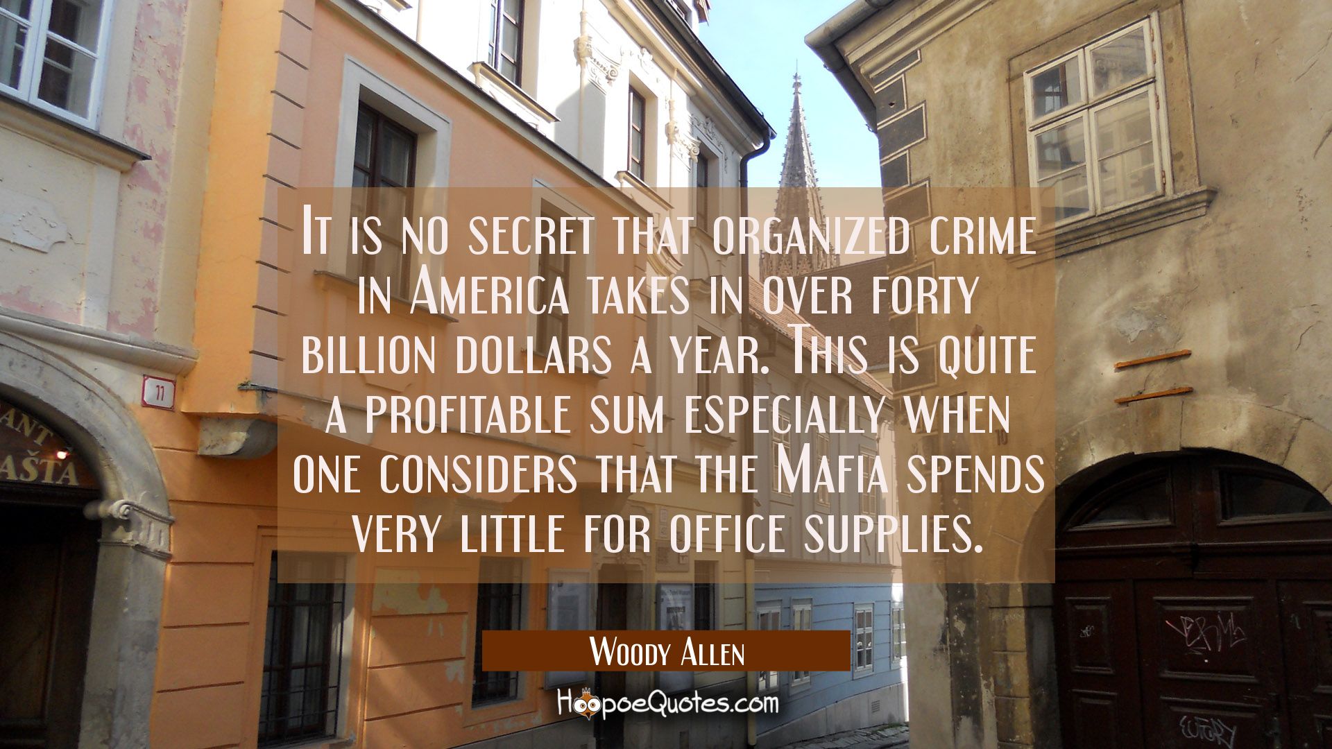 It is no secret that organized crime in America takes in over forty billion dollars a year. This is quite a profitable sum especially when one considers that the Mafia spends very little for office supplies.