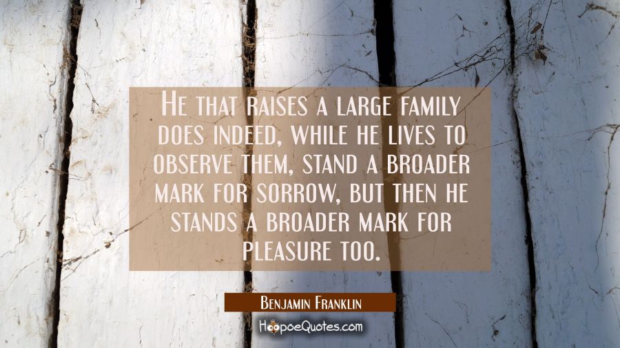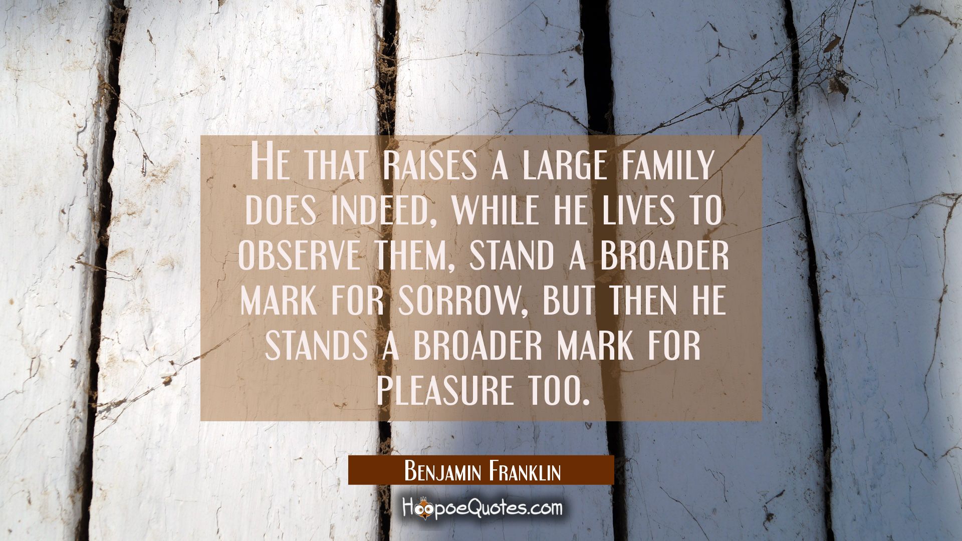 He that raises a large family does indeed, while he lives to observe them, stand a broader mark for sorrow, but then he stands a broader mark for pleasure too.