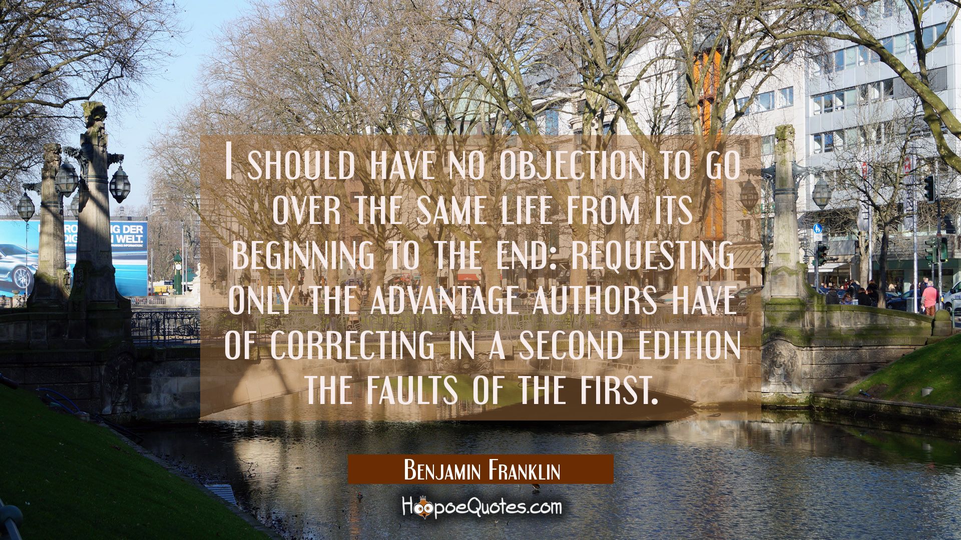 I should have no objection to go over the same life from its beginning to the end: requesting only the advantage authors have of correcting in a second edition the faults of the first.