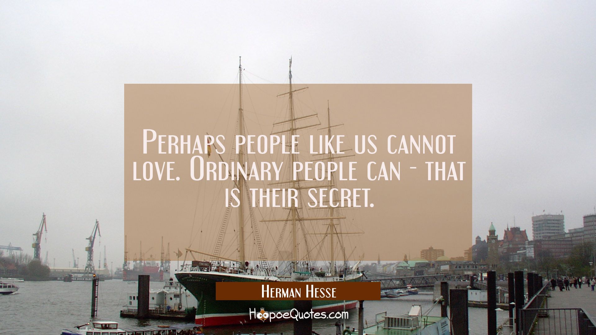 Perhaps people like us cannot love. Ordinary people can - that is their secret.