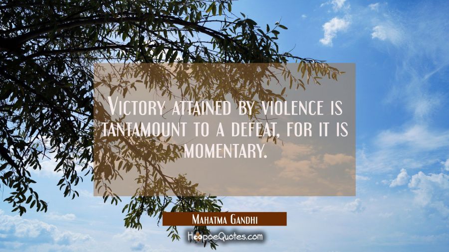 Victory attained by violence is tantamount to a defeat, for it is momentary.