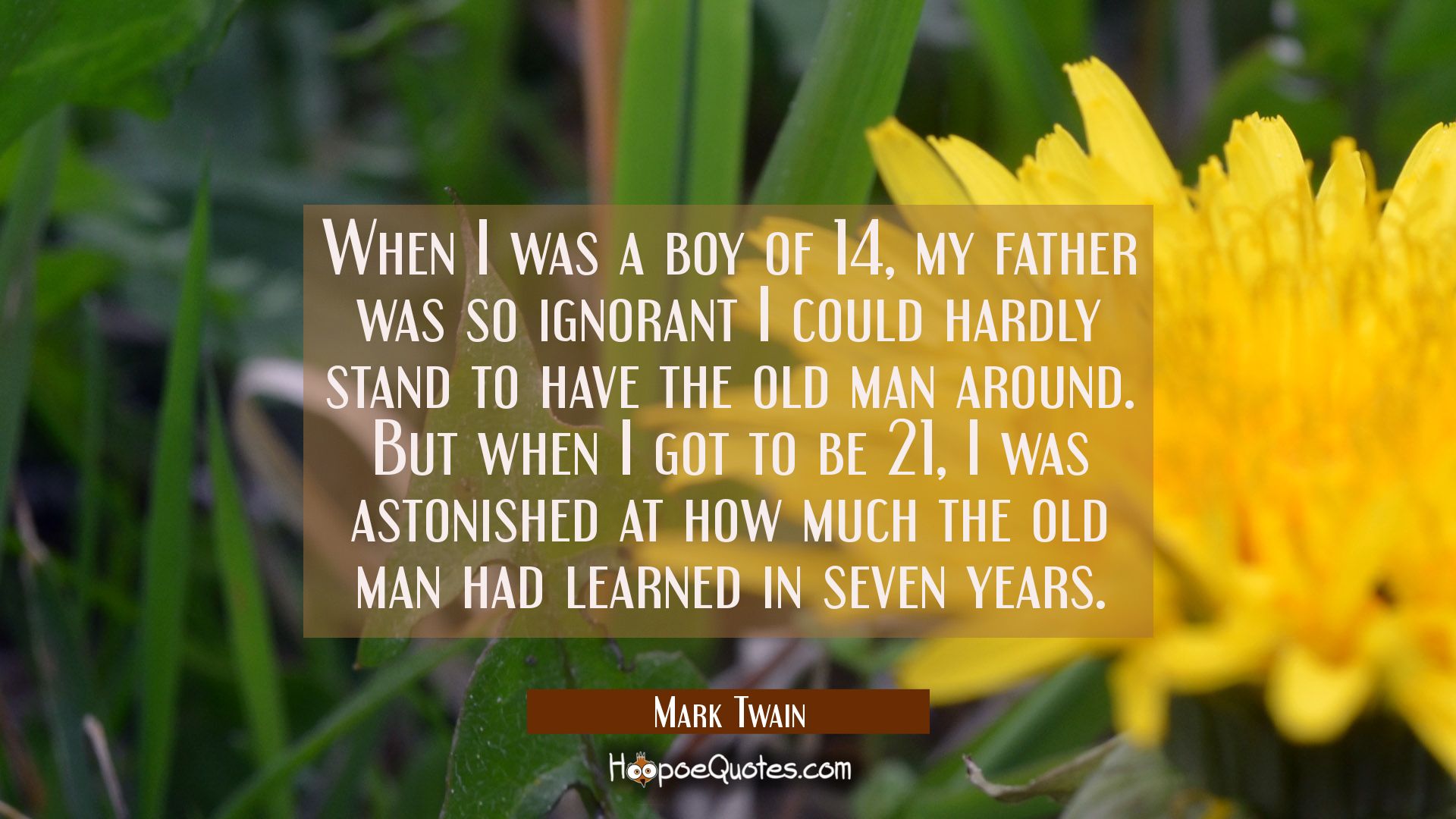When I was a boy of 14, my father was so ignorant I could hardly stand to have the old man around. But when I got to be 21, I was astonished at how much the old man had learned in seven years.