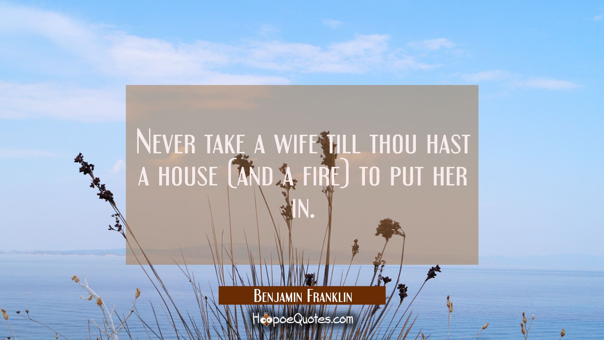 Never take a wife till thou hast a house (and a fire) to put her in.