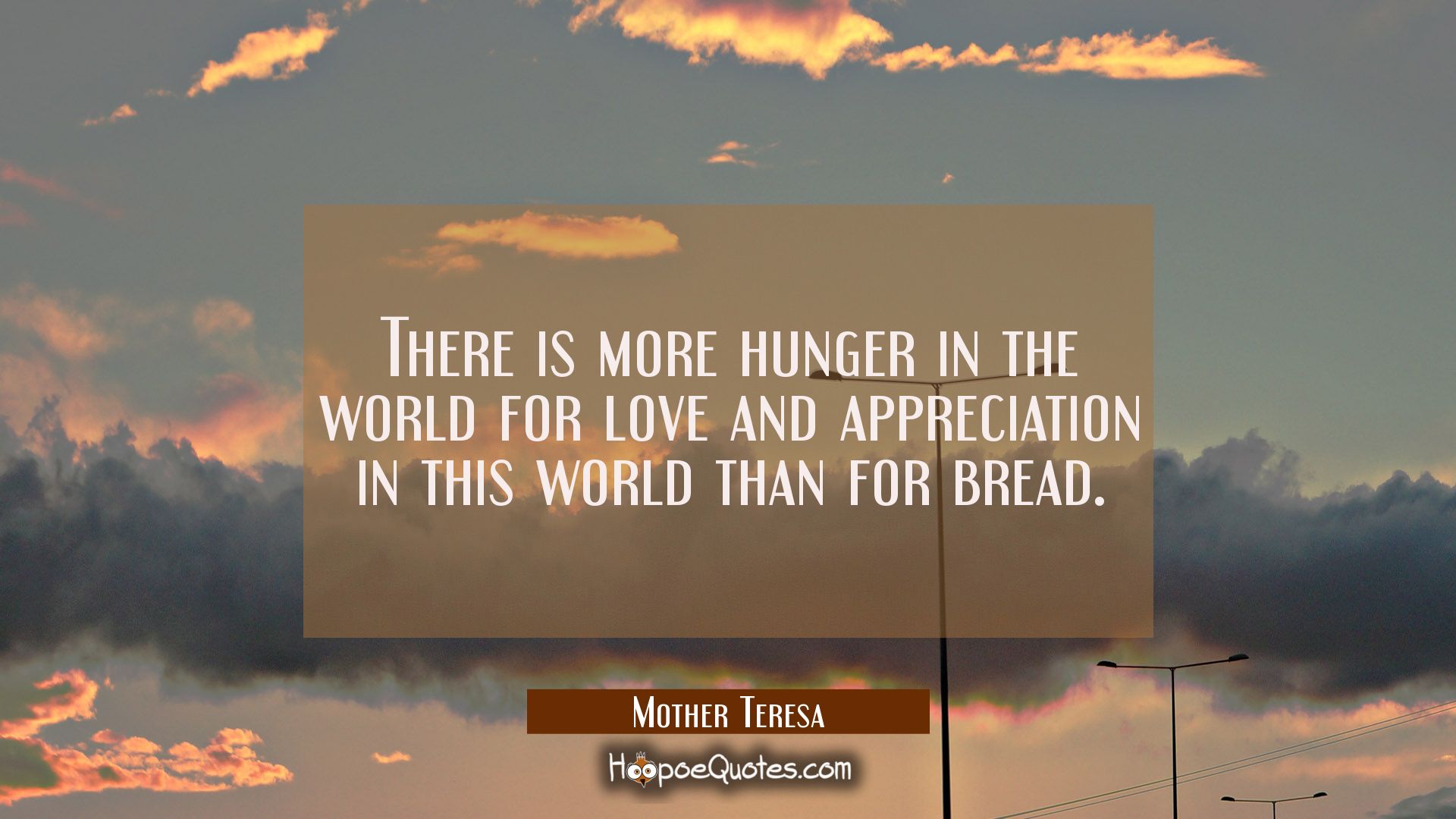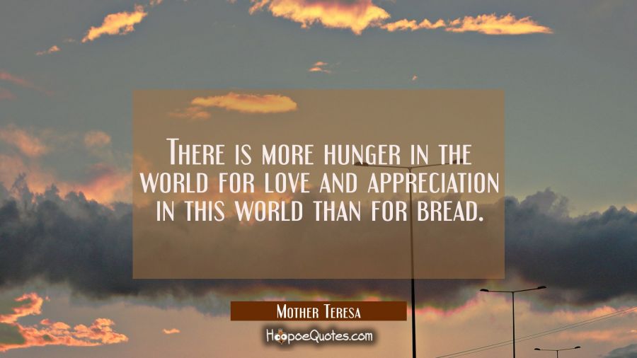 There is more hunger in the world for love and appreciation in this world than for bread.