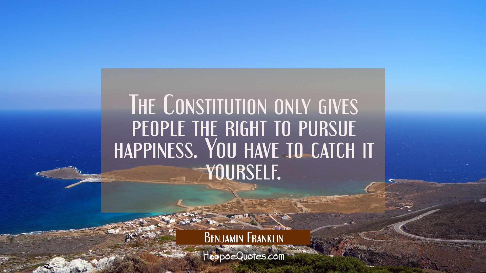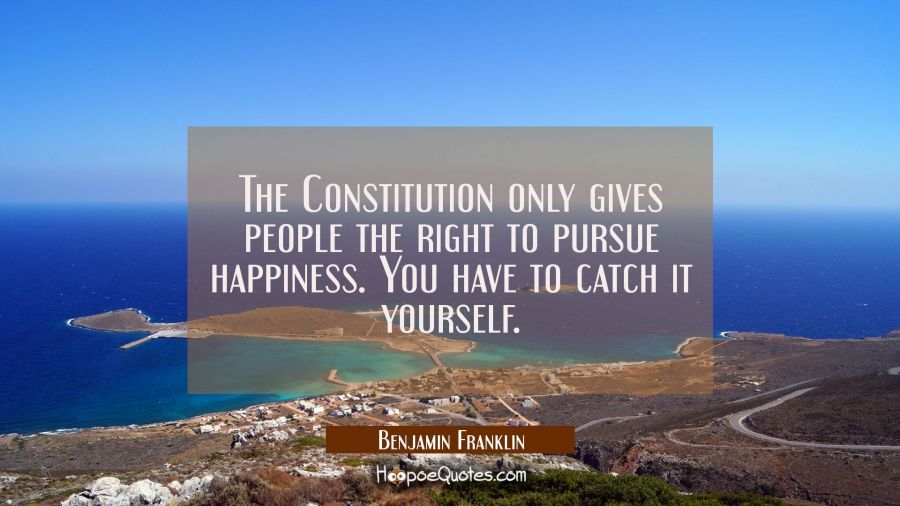 The Constitution only gives people the right to pursue happiness. You have to catch it yourself.