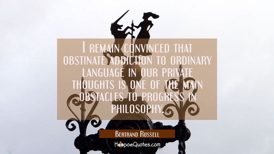 I remain convinced that obstinate addiction to ordinary language in our private thoughts is one of the main obstacles to progress in philosophy.
