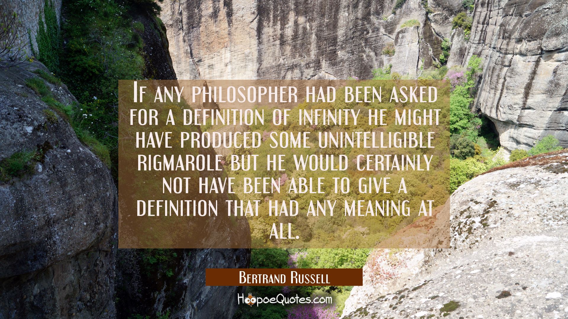 If any philosopher had been asked for a definition of infinity he might have produced some unintelligible rigmarole but he would certainly not have been able to give a definition that had any meaning at all.