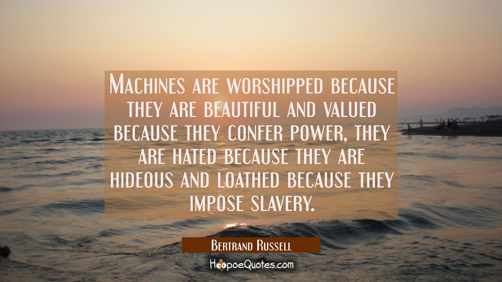Machines are worshipped because they are beautiful and valued because they confer power, they are hated because they are hideous and loathed because they impose slavery.